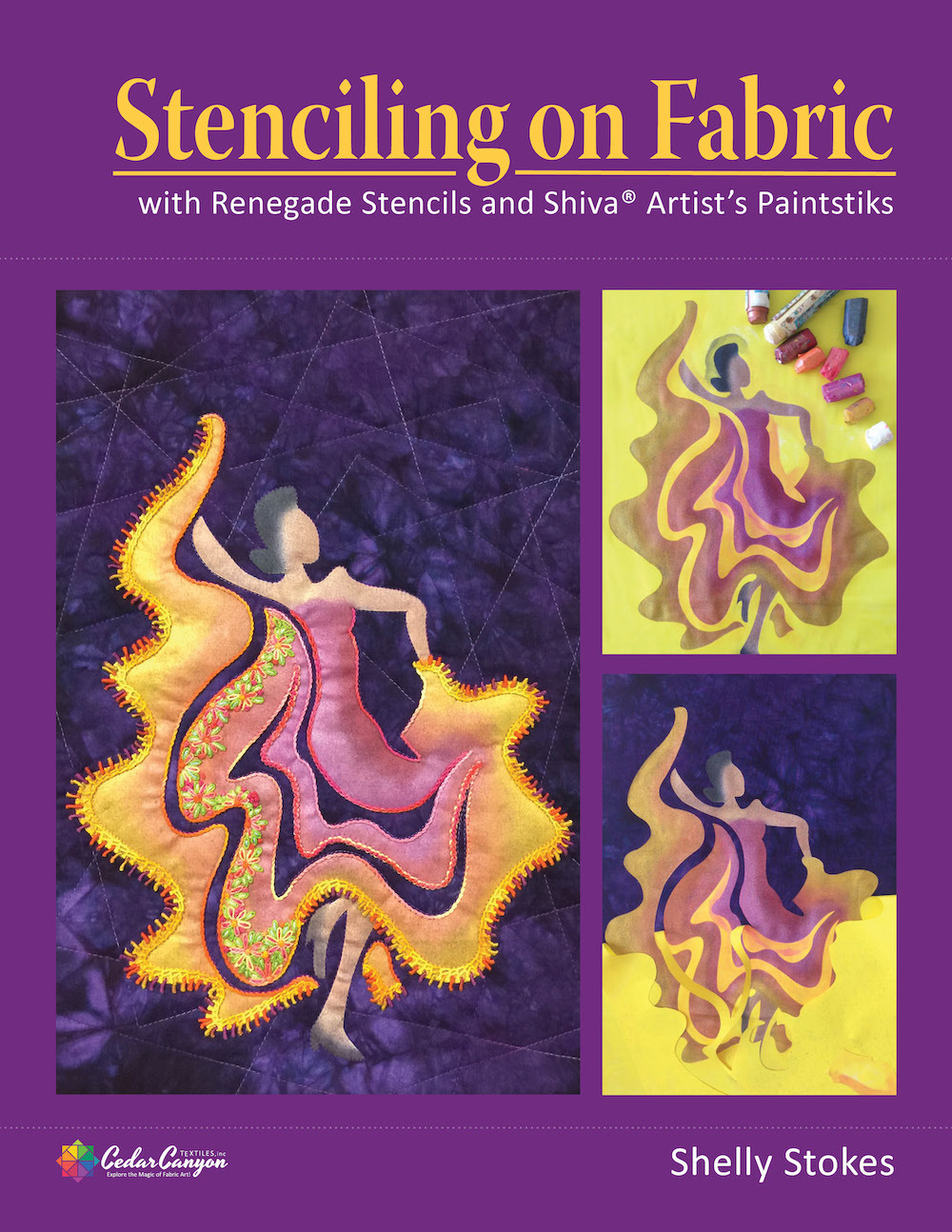 Stenciling on Fabric with Renegade Stencils and Shiva Artist’s Paintstiks is a step-by-step guide to adding images to fabric with sticky-back vinyl stencils. It’s filled with full-color photos and instructions that will have you painting in no time!